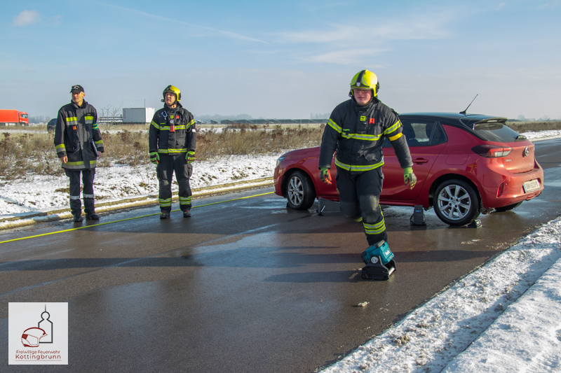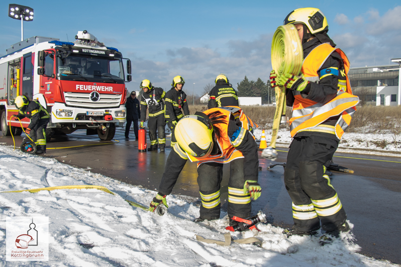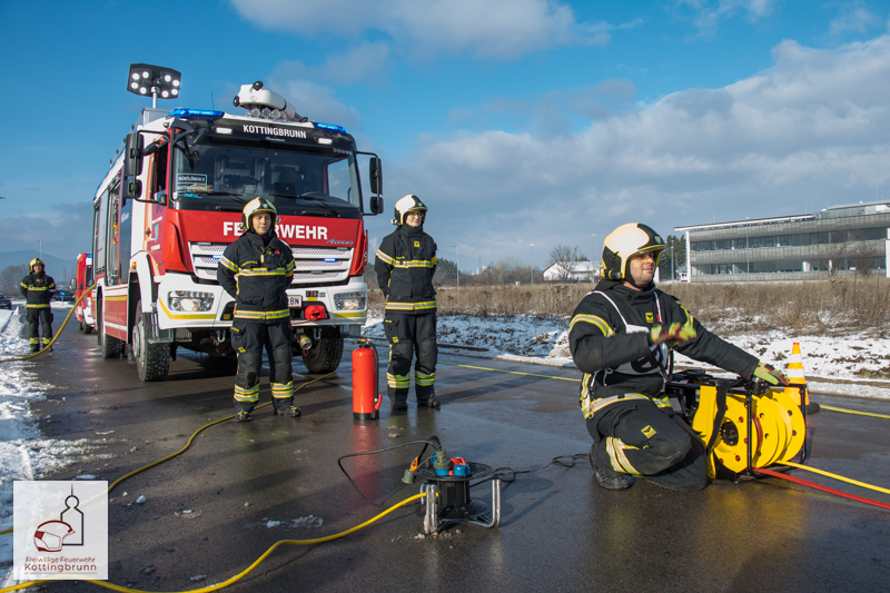 Am Vormittag des 10.01.2026 stellten sich zwei Gruppen der Freiwilligen Feuerwehr Kottingbrunn der Ausbildungsprüfung „Technischer Einsatz“ in Bronze. Bei dieser Prüfung wird besonderer Wert auf die richtige und sichere Handhabung der in der eigenen Feuerwehr vorhandenen Geräte gelegt. Die Ausbildungsprüfung umfasst Erste-Hilfe-Maßnahmen, Gerätekunde sowie eine praktische Einsatzübung.