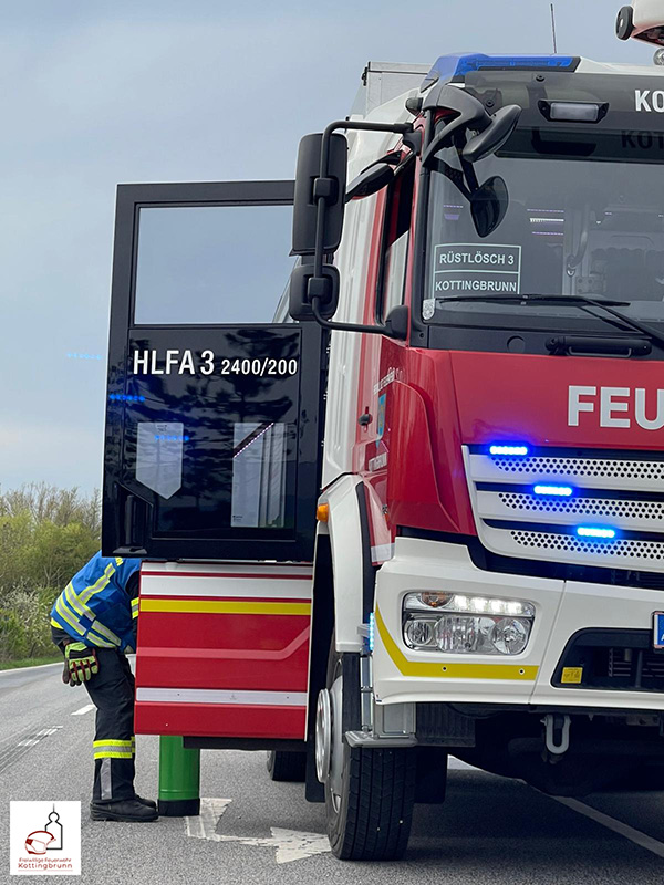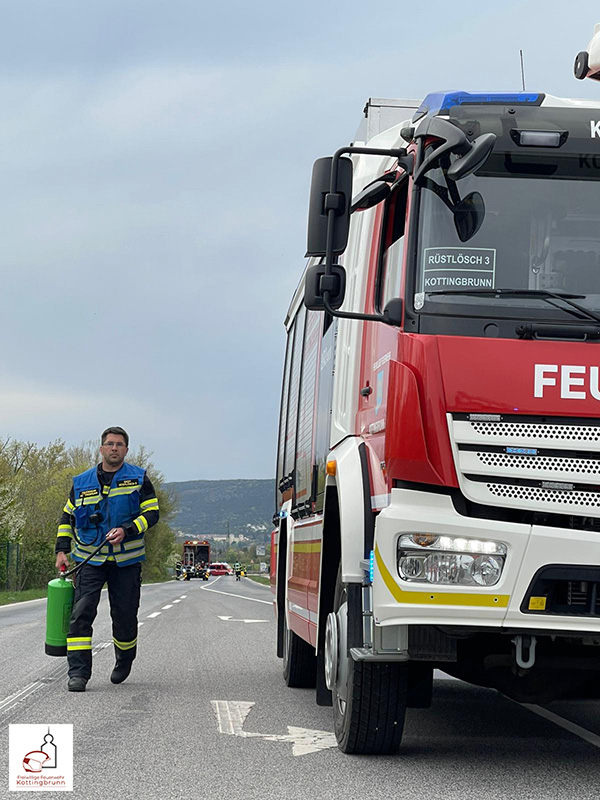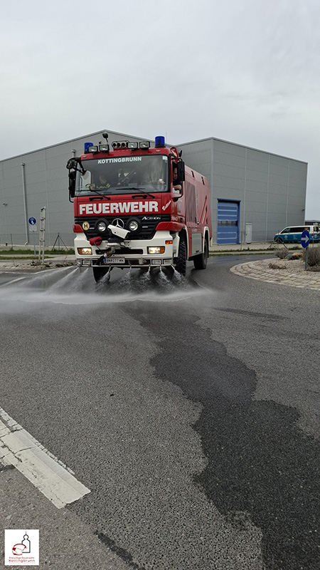 In den Nachmittagsstunden des 13.04.2026 wurde die Freiwillige Feuerwehr Kottingbrunn zu einer Ölspur im Bereich der Flugfeldstraße alarmiert. Durch einen technischen Defekt verlor ein Traktor über eine Strecke von mehr als 2 km Hydrauliköl. Mittels Bioversal wurde die Fahrbahn gereinigt bzw. mit Ölbindemittel gebunden. Um sämtliche Rückstände der Bindemittel zu entfernen, wurde die gesamte Strecke mit den Straßenwaschanlage des HLF 4 gereinigt.